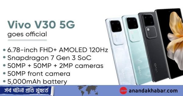 Vivo V30 5G এর দাম বাংলাদেশে প্রায় ৩০,০০০ টাকা। দাম পরিবর্তন হতে পারে।
